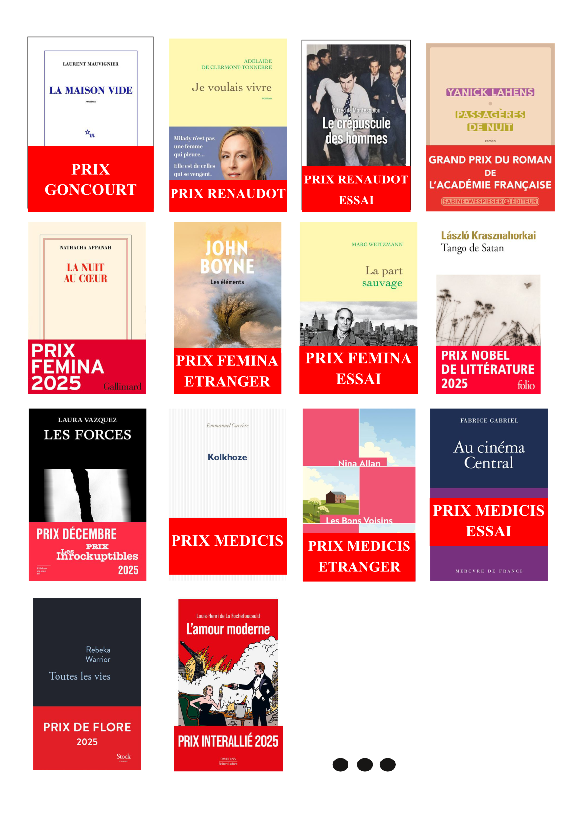 Le palmarès des premiers prix littéraires d'automne. Les ouvrages disponibles dans votre médiathèque.